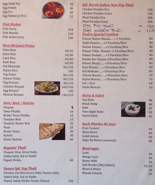 Menu Of Swara Veg Non Veg Restaurant Kothrud Pune